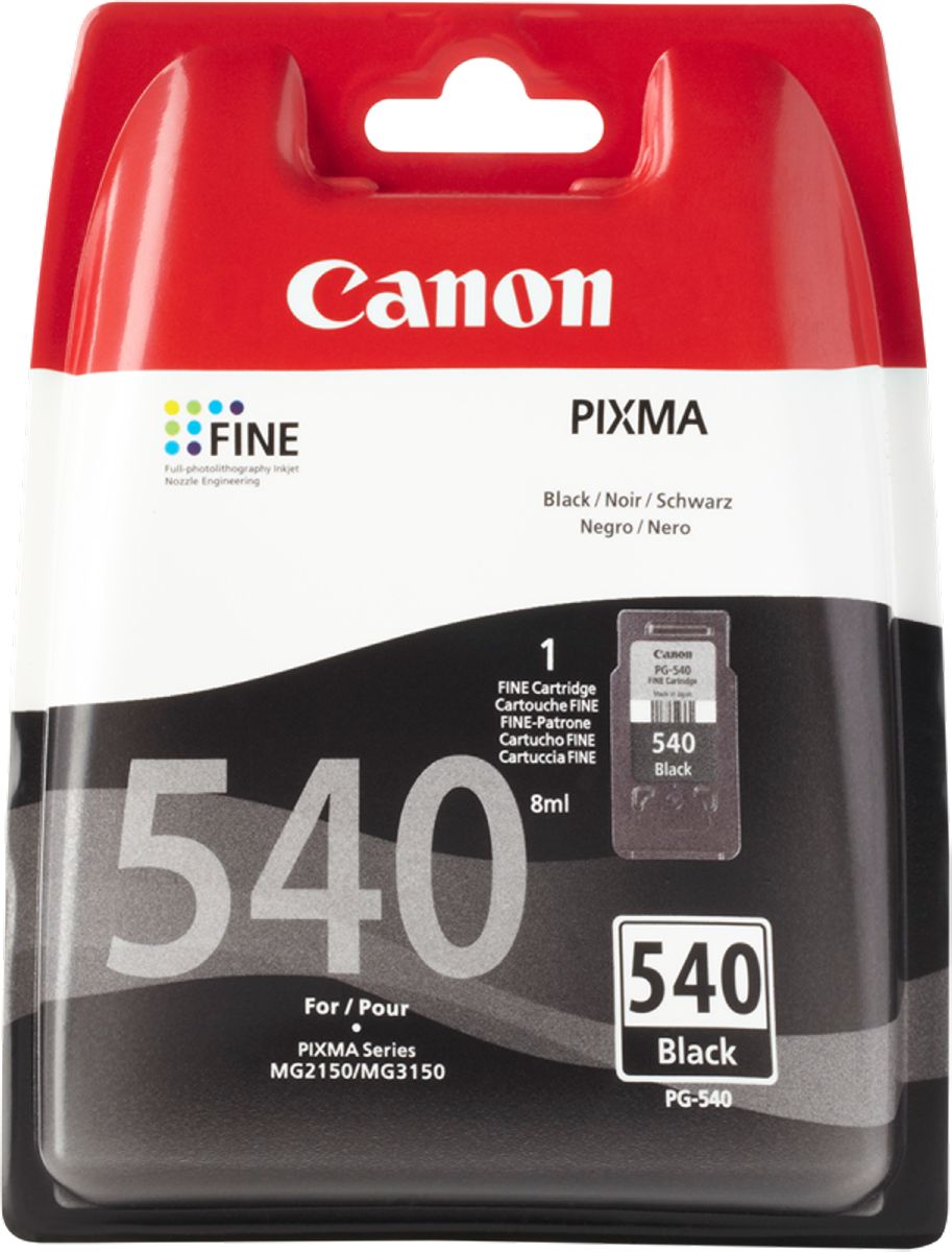Cartuccia originale Canon compatibile PIXMA MG2150 / PIXMA MG3150 / PIXMA MX375 / PIXMA MX435 / PIXMA MG4150 / PIXMA MX515 / PIXMA MG2250 / PIXMA MG3250 / PIXMA MG4250 / PIXMA MX395 / PIXMA MX455 / PIXMA MX525 / PIXMA MG3550 / PIXMA MX535 / PIXMA MX475 / PIXMA MG4200 /PIXMA MG3650 / PIXMA TS5150 / PIXMA TS5151 / PIXMA MG3650 rot / PIXMA MG3650S BK / PIXMA MG3650S WH / PIXMA MG3650S Rot Codice OEM Canon PG-540 (5225B005)